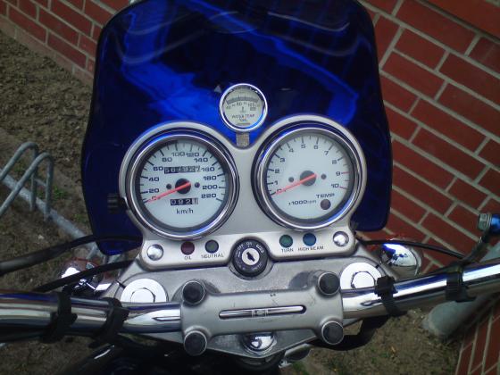 Baujahr 1996 | 55000 km | Scheibe, Gabelfedern, Tankrucksack, hepco&becker Motorbügel sowie gepäckträger, LSL Touringlenker, Lenkerendenspiegel, 12V Steckdose, Kühlwasser Temp. Anzeige, Stahlflex vorn, Neuer Lack(Shadow Blue Metallic)