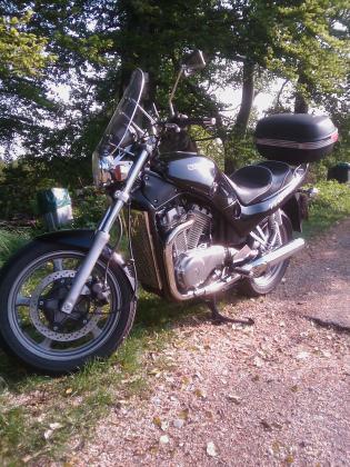 Baujahr 1993 | 41 km | Tourenscheibe Sitzbank umgebaut Topcase und Held Packtaschen Kühlergrill aus V2A ( VX 800 )