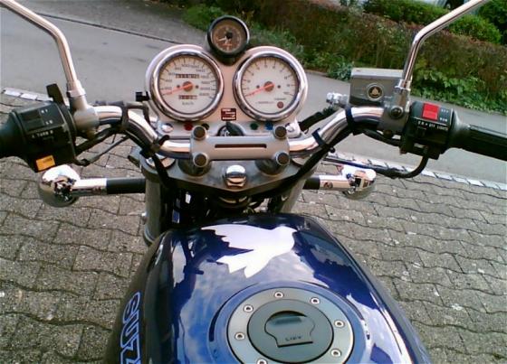 Baujahr 1992 | 57900 km | ORIGINALZUSTAND BIS AUF DAS ZUBEHÖR: Tomaselli Lenker mit Antivibrations-Lenkerenden verchromt, Original-Lenker vorhanden! Gepäckträger verchromt, zugleich Topcase Aufnahme. Racimex Zeituhr oberhalb Drehzahlmesser und Tachometer gut sichtbar, Öltemperaturanzeige im Öleinfülldeckel, damit die Betriebstemperatur des ohnehin immer geschonten Krafdtrades abgelesen werden kann. Hatte diese VX aus Erstbesitz erworben, alle Wartungen regelmäßig durchgeführt, eher mal ein Ölwechsel mehr als nötig, Breksklötze vo. u. hi. neuwertig!