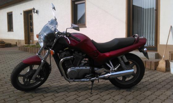 Baujahr 1993 | 44000 km | In Originalzustand gekauft. Mittlerweile Stahlflex vorn und hinten, Puig Mini Scheibe, 12V Steckdose unterm Sitz. V2A Kühlerabdeckung, V2A Rahmendreiecke. Umbau/Rückbau auf Einzelklemmen am Lenker für Navilösung