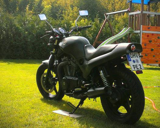 Baujahr 1993 | 48500 km | Mehrmonatigen Umbau 09.2014 abgeschlossen: ABM Superbikelenker, Spieler Stahlflex Titan, Highsider Hauptscheinwerfer, Kotflügelumbau, Heckumbau, Oldschool Led Rücklicht, kleine Kennzeichenhalterung, Mini Blinker Louis, Saito Sinterbremsbeläge, Wirth-Gabelfedern, graphitschwarzes Krümmerschutzband, angepasste Enduro Faltenbälge Telegabel und ALLES entlackt und selbst neu lackiert. Auspuffeinsätze von Sound Control Systems kommen nach dem nächsten TÜV :-)