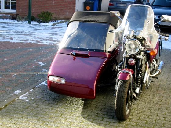 Baujahr 1993 | 53000 km | 1994 Gesp, EML-Komplettumbau zum Gespann: Beiwagen: CT-2000 1,5-Sitzer mit Brembo- Scheibenbremse, Reifen 155/65-14, Cabrioverdeck, 30-Liter Unterflurtank, Radio, Gurte usw. Zugmaschine: Geschobene Schwinge mit EML-Federbeinen vorn, Koni- Federbeine mit Gespannfedern hinten, Reifen: 135/70-15 vorn, 155/70 15 hinten, geschraubte EML-Stahlfelgen, Drag Bar Lenker,Ochsenaugen, Harley- Scheinwerfer, Minispiegel, BSM-Future 2 in 1 linksseitig, Warnblinkanlage, Autobatterie im Beiwagen.