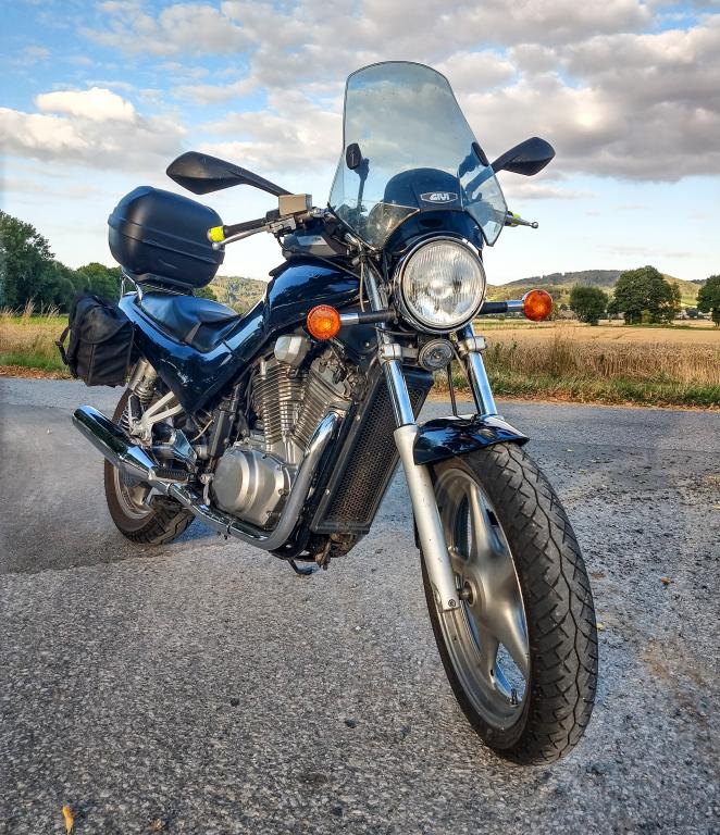 Baujahr 1993 | 62000 km | Eigentlich nur Anbauten (Scheibe, Tasche, Topcase), sonst ziemlich original. Etwas höherer Lenker.