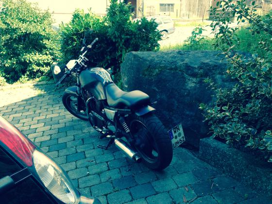 Baujahr 1991 | 180000 km | MFW Vario Raiser,fehling straight 98.5 cm, kellermann micro 1000 df blinker hinten(Brems-Rück-Blinkerkombination), Shinyo Storm Scheinwerfer,Bugspoiler von Planet Tuning,Stahlflex vorn-hinten,Kellermann lenkerenden Blinker, Motogadget motoscope minitacho, kupplungsfenster(eigenbau), bsm vampire auspuffanlage 2in1, tieferlegung, seitlicher kennzeichenhalter