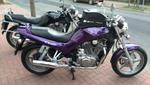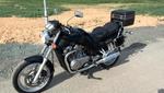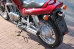 Progressive Gabelfedern von Wilbers,Stahlflex Bremsleitungen von Melvin, Hepco Becker Träger, Rest original. Und für die Touren mit Sozia noch eine King & Queen Sitzbank.