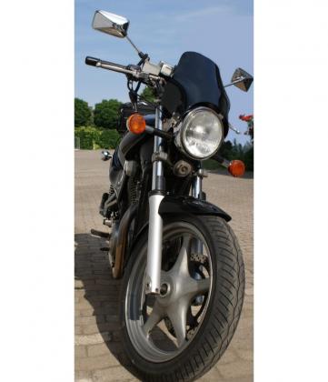 BSM Future 2in1, Bridgestone-Reifen, Hagon-Stoßdämpfer, schwarze Mini-Scheibe v. Puig; ab 2011: LSL-Spiegel Clubman, FHL-Stahlflex v. probrake, BRAKING-Bremsscheibe vorn, Wirth-Gabelfedern