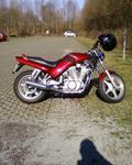 breite Lenkstange, kleiner Tacho, Lenkerendenspiegel, Stahlflex Benzinleitungen, Stahlflex Bremsleitungen, 12v Bordsteckdose in Seitenverkleidung, Mini-Hupe, Alu Scheinwerferhalter, LED-Kennzeichenbeleuchtung, Heckkürzung