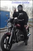 ABM-Superbike Lenker 0229, kleine Cockpitscheibe, Lucas Stahlflex vorn, Wilberts Gabelfedern vorn, weiße Blinkergläser, Blinker vorn leicht gekürzt, aufgepolsterte Sitzbank, schwarze Felgen mit passenden Felgenrandaufklebern, 12V Steckdose im Rahmendreieck, Spritzschutz modifiziert ... und Kleinkram