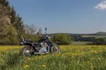 kleine Blinker, flacher Lenker, Heck gekürzt, Kennzeichen hochgelegt