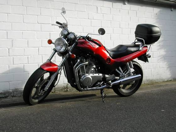 alles original bis auf Stahlflex Bremsleitungen, Wirth-Federn vorn und Topcase