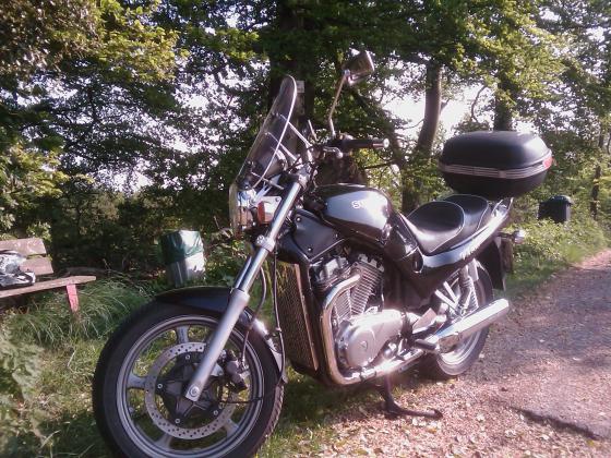 Baujahr 1993 | 41 km | Tourenscheibe Sitzbank umgebaut Topcase und Held Packtaschen Kühlergrill aus V2A ( VX 800 )