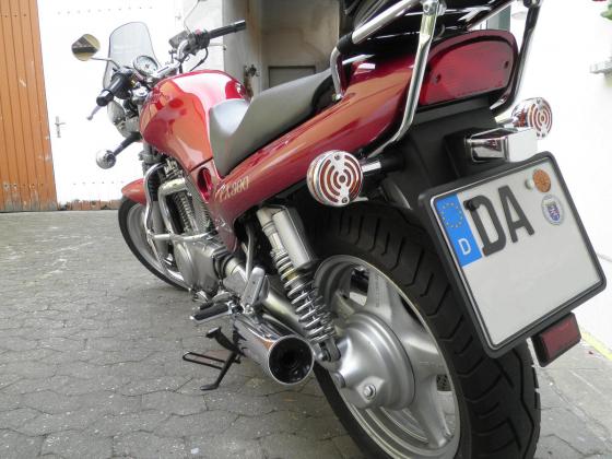 Baujahr 1995 | 16000 km | Wirth Gabelfedern vorne, Mini Scheibe "Puig", Sturzbügel, Bridgestone BT45, Faltenbälge an der Gabel;-), Melvin Stahlflex vo+hi,