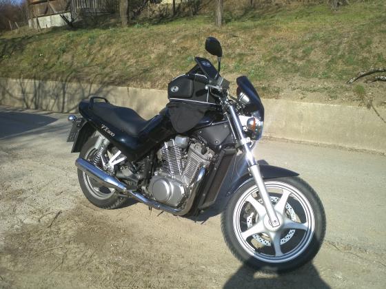 Baujahr 1995 | 38000 km | Farbsatz geändert von lila auf schwarz (Seitenverkleidung, Tank (neu versiegelt mit Kreem 2K), Benzinhahn Abdeckung), Gel Sitzbank neu gesattelt (Foto folgt), PUIG Windy Windschutzscheibe, SHARK Spiegel, Five Stars Seitenträger (vorher Givi Wingrack), für große Strecken mit zwei Kappa K40 Monokey Seitenkoffern unterwegs, Tecnoparts Gel Batterie (12V/14Ah), Klarglasscheinwerfer Umbau (Shin-Yo asymmetrisch), USB Anschluss an linker Rahmenverkleidung, Mini Blinker, Alu Kühlgitter