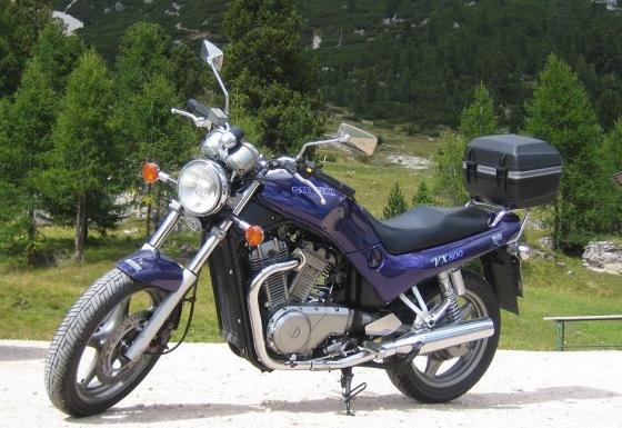 Baujahr 1992 | 57900 km | ORIGINALZUSTAND BIS AUF DAS ZUBEHÖR: Tomaselli Lenker mit Antivibrations-Lenkerenden verchromt, Original-Lenker vorhanden! Gepäckträger verchromt, zugleich Topcase Aufnahme. Racimex Zeituhr oberhalb Drehzahlmesser und Tachometer gut sichtbar, Öltemperaturanzeige im Öleinfülldeckel, damit die Betriebstemperatur des ohnehin immer geschonten Krafdtrades abgelesen werden kann. Hatte diese VX aus Erstbesitz erworben, alle Wartungen regelmäßig durchgeführt, eher mal ein Ölwechsel mehr als nötig, Breksklötze vo. u. hi. neuwertig!
