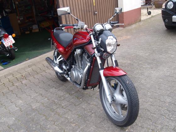 Baujahr 1996 | 45000 km | US-Modell. Eigene Veränderungen: ,MT-03 Scheinwerfer,Stahlflex rot hi/vo ,LED Zusatz-Rück/Bremslicht,Superbikelenker rot eloxiert, rutschhemmender Sitzbankbezug ,Miniblinker,Warnblinkanlage,Alu -Gummigriffe,Gabelprotektoren, lackierter Kühlerrahmen,Grill,Bremssättel und Gabelabdeckungen usw.