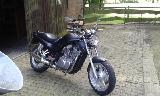 Baujahr 1993 | 38000 km | Der echte Lenker ist bereits wieder drauf. Die originalen Blinker auch, finde ich schöner... Die Windschutzscheibe finde ich nicht schöner, macht aber Sinn... Und das Machinchen ist schwarz matt foliert :) Ich liebe das Gerät :-)) Schade, dass es hier im Norden kaum gute Strecken gibt...