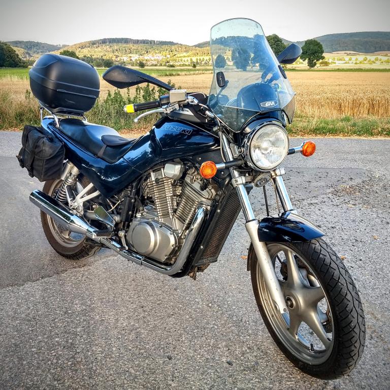 Baujahr 1993 | 62000 km | Eigentlich nur Anbauten (Scheibe, Tasche, Topcase), sonst ziemlich original. Etwas höherer Lenker.