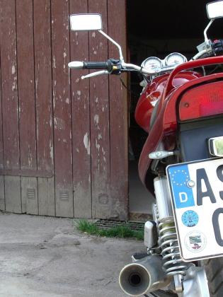 Baujahr 1995 | 36000 km | Alarmanlage, Kellermann-Blinker (vorn Lenkerendenblinker BL 1000 white + hinten Micro 1000 LED white), Lenker (Lucas Typ 10), Bridgestone BT45, Edelstahlabdeckung Bremsflüssigkeitsbehälter, Edelstahl-Kühlergrill, MBD-Bugspoiler, ShinYo Doppelscheinwerfer Alu matt an verchromten Louis Lampenhaltern, Spiegel Stahlflex-Bremsleitungen vorn und hinten; demnächst: Rücklicht, Luftfilterabdeckung in schick, Rückspiegel, neuer Lack.... in Zukunft weitere geplant Neue Bilder folgen
