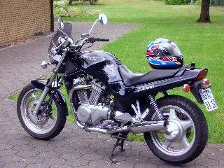 Baujahr 1991 | 61000 km | Wilbers-Federn vorne, Hagon-Stoßfänger hinten, selbstgebauter Topcasehalter, Lampenverkleidung, BT 45 Reifen, Bosch H4 Licht(+60%), Kotflügelverlängerung hinten abgeschraubt, Sitzbank wird aufgepolstert