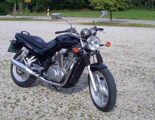 Baujahr 1990 | 37000 km | Stahlflex vorne, White Power Gabelfedern mit 10er Gabelöl, Gabel 1,5 cm durchgesteckt, 8Ah Gelbatterie (ca. 3 kg), BT 45, Kardanöl vollsynth. Castrol 75W-140, Krümmer optimiert,