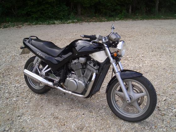 Baujahr 1993 | 59000 km | -gerader Lenker mit spitzen Vibrationsdämpfern -Schutzblech aus Alu -kleine Blinker -Gabel durchgesteckt(30mm) -Edelstahlbleche seidlich unterm Tank,am vorderem Schutzblech und Lichtaufhägung Bei Bedarf: -suzuki Ledertaschen -getöntes Windschild