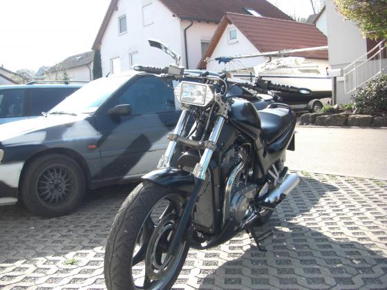 Baujahr 1991 | 180000 km | MFW Vario Raiser,fehling straight 98.5 cm, kellermann micro 1000 df blinker hinten(Brems-Rück-Blinkerkombination), Shinyo Storm Scheinwerfer,Bugspoiler von Planet Tuning,Stahlflex vorn-hinten,Kellermann lenkerenden Blinker, Motogadget motoscope minitacho, kupplungsfenster(eigenbau), bsm vampire auspuffanlage 2in1, tieferlegung, seitlicher kennzeichenhalter