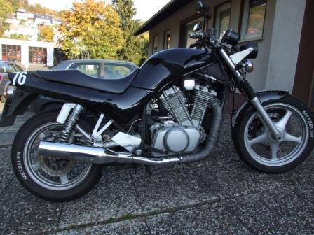 Baujahr 1990 | 45000 km | Die 23. Maschine die vom Band gelaufen ist. Schon ne alte Dame aber läuft noch wie ne 1. Ein paar Umbauten sind schon gemacht aber die Baustelle nimmt niemlas ein Ende ;-) Stahlflex vorne und Hinten, Lenkerumbau, Sitzbank Umbau( auf den bildern noch nicht zu sehen ) . andere Scheinwerfer, Lenkergewichte, usw usw....