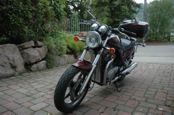 kleinere Modifiaktionen an der Kühlerabdeckung (neuer Rahmen aus Alu - poliert) und die Seitenabdeckungen vorne in Fahrzeugfarbe. Koffer ebenfalls in Fahrzeugfarbe