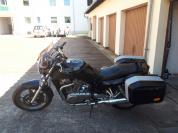 Koffer, Topcase, Scheibe, Tourenlenker, Soziusfussrasten verlegt, Wilbers Gabelfedern, Stahlflex vorn,