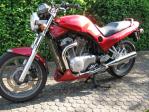 Bugspoiler, Koni-Dämpfer, Edelstahl-Kühlergrill, Wilbers Gabelfedern, die Kenzeichenbeleuchtung und das Kennzeichen wurden höhergelegt. Die Sitzbank habe ich neu bezogen.