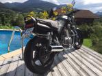 Umbau 2021: - Demontage Five Stars Verkleidung - Heckumbau incl. Sitzbank - Lenker, Spiegel neu - Frontfender neu - Frontscheinwerfer LED 6" - Doppelheckleuchten LED - Sturzbügel und Kofferträger belassen - Seitenverkleidung gestrippt - Umlackierung schwarz matt, Räder, Gabelholme schwarz metallic