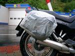 Nackter geht nicht: Hab eine Mini-Scheibe, die aber nur für größere Touren aufgezogen wird. Häßlicher geht auch nicht: Nach diversen Umschmeißern direkt vor der Haustür hat der Tank fiese Dellen, selbst die Instrumentenhalterung ist völlig verbogen und Rost hat auch an einigen Stellen angesetzt.