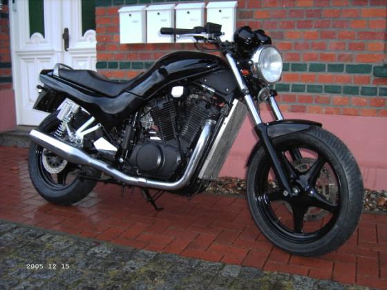 Kompletter Neuaufbau 2006, Motor generalüberholt und geschwärzt, Tank innen versiegelt, Miniblinker, Edelstahlkühlergrill, Edelstahlbremsleitungen, härtere Federn, neue Hagondämpfer hinten, Heck etwas gekürzt