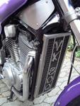 Kühlergrillverkleidung, Lenkkopfverkleidung und Gabelstabilisator aus V2A, kl.Scheibe, Topcase und Koffersatz, Koni-Dämpfer/ Heizgriffe, Ölthermometer, Rücklicht - Umbau auf LED´s Neue Lackierung